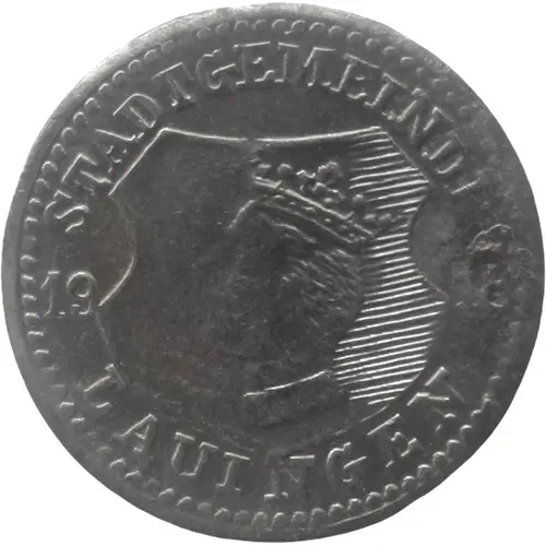 | Obverse lettering | STADTGEMEINDE 19 18 LAUINGEN |