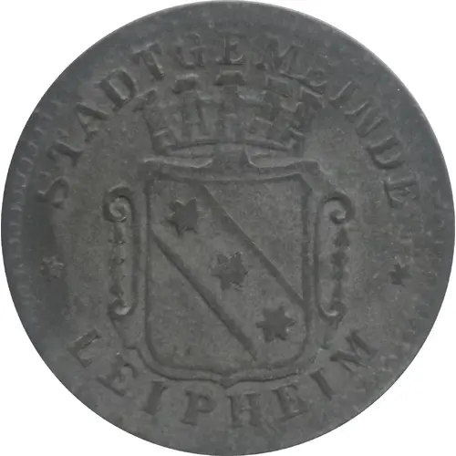 Artistry: The specific engraver for such utilitarian emergency issues is typically unrecorded. The coin's design would likely adhere to a functionalist aesthetic, prioritizing legibility. Common motifs for Leipheim Notgeld include the denomination "5 Pfennig" and "Stadt Leipheim," possibly accompanied by a simplified municipal coat of arms or regional emblem. This reflects the pragmatic nature of wartime production, focusing on immediate utility rather than intricate artistic schools.