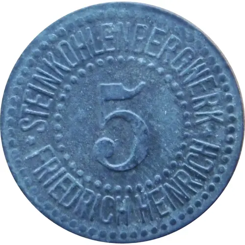 | Leyenda del anverso | STEINKOHLENBERGWERK 5 ★ FRIEDRICH HEINRICH ★ |