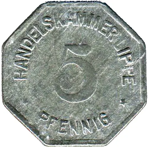 | 表面の銘文 | HANDELSKAMMER LIPPE 5 ★ PFENNIG ★ |
