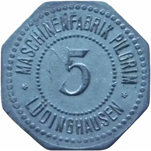 | Obverse lettering | MASCHINENFABRIK PILGRIM 5 ✿ LÜDINGHAUSEN ✿ |