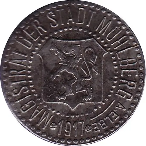 | Obverse lettering | MAGISTRAT DER STADT MÜHLBERG A. ELBE ✿ 1917 ✿ |