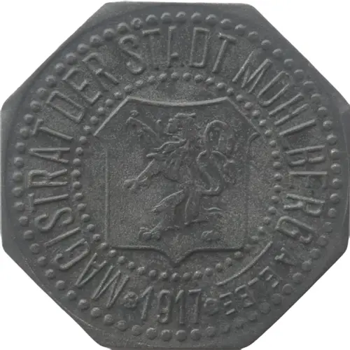 | Obverse lettering | MAGISTRAT DER STADT MÜHLBERG A. ELBE ✿ 1917 ✿ |
