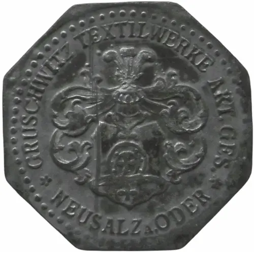 | Obverse lettering | GRUSCHWITZ TEXTILWERKE AKT. GES. ✿ NEUSALZ a. ODER ✿ |