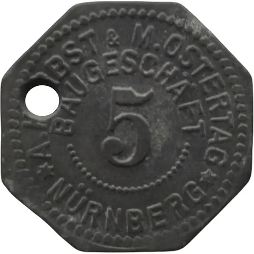 | Obverse lettering | A. HERBST & M. OSTERTAG BAUGESCHÄFT 5 ✶ NÜRNBERG✶ |