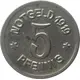| Reverse lettering | NOTGELD 1919 5 ✶ PFENNIG ✶ |