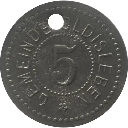 Obverse lettering GEMEINDE OLDISLEBEN 5 ✿