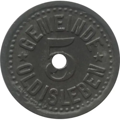 | Obverse lettering | GEMEINDE 5 ★ OLDISLEBEN ★ |