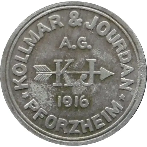 | Obverse lettering | KOLLMAR & JOURDAN A.G. K.J 1916 ★ PFORZHEIM ★ |