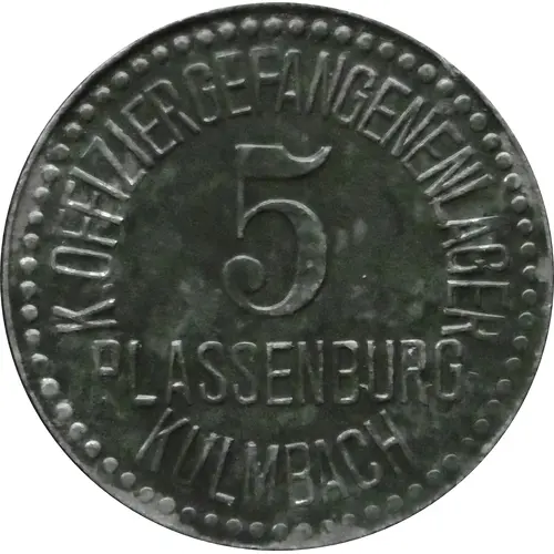 | Obverse lettering | K. OFFIZIERGEFANGENENLAGER 5 PLASSENBURG- KULMBACH |