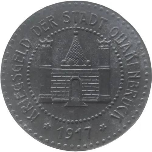 KRIEGSGELD DER STADT QUAKENBRÜCK ★ 1917 ★ (Translation: WAR MONEY OF THE CITY OF QUAKENBRUCK) |