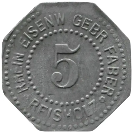 | Legenda del dritto | RHEIN. EISENW. GEBR. FABER 5 ● REISHOLZ ● |