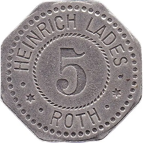 | Obverse lettering | HEINRICH LADES 5 ● ★ ● ROTH ● ★ ● |