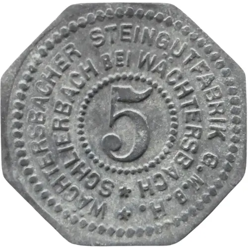 | Obverse lettering | WÄCHTERSBACHER STEINGUTFABRIK G.M.B.H. ★ SCHLIERBACH BEI WÄCHTERSBACH ★ 5 |