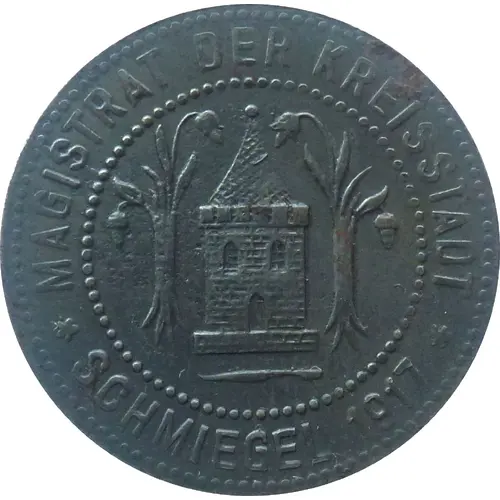 | Obverse lettering | MAGISTRAT DER KREISSTADT ★ SCHMIEGEL 1917 ★ |