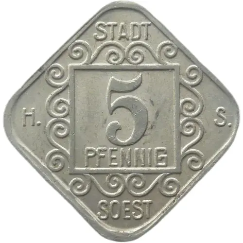 | Obverse lettering | STADT H. 5 S. PFENNIG SOEST |
