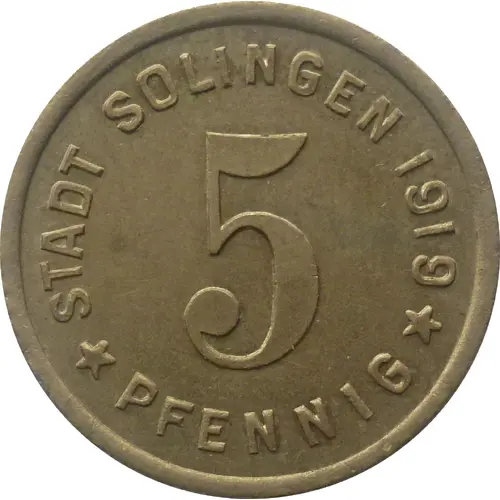 | Obverse lettering | STADT SOLLINGEN 1919 5 ★ PFENNIG ★ |
