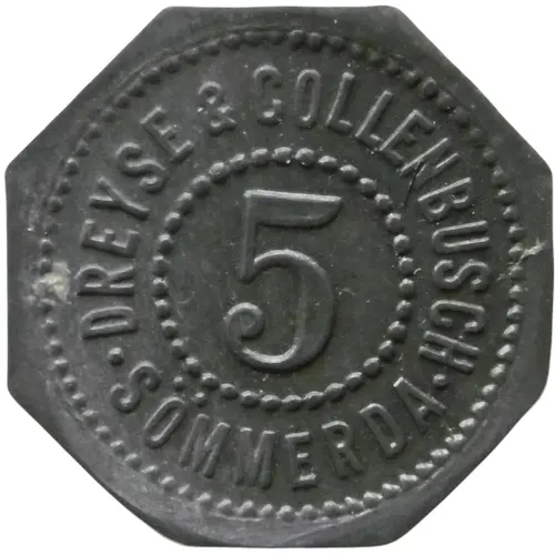 | نوشتههای روی سکه | DREYSE & COLLENBUSCH 5 ● SÖMMERDA ● |