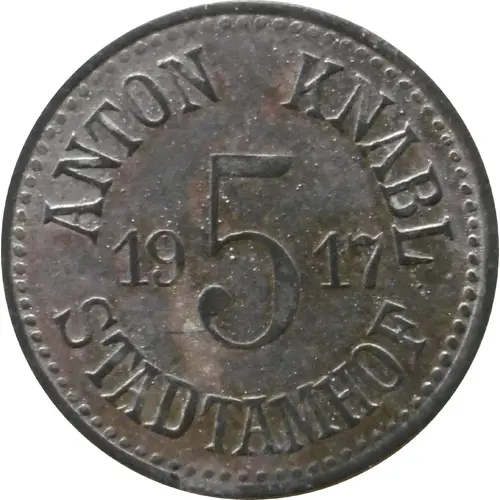 | Legenda do anverso | ANTON KNABL 1917 5 STADTAMHOF |