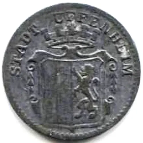 | Obverse description | Pearl rim, city name half circled above Coat of Arms |