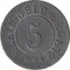 Technical/Grading: Struck in zinc, a soft and reactive metal, this coin presents unique preservation and grading challenges. High-points susceptible to wear or corrosion typically include the raised lettering of the denomination and issuer's name, and any central design elements. Technical strike qualities often reveal a softer impression compared to pre-war issues, due to hurried production. Zinc is highly prone to "zinc rot" and environmental damage, making well-preserved examples with strong, unblemished surfaces particularly desirable.