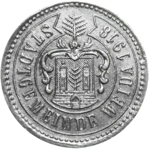 | Obverse lettering | STADTGEMEINDE WEIDA 1918 |