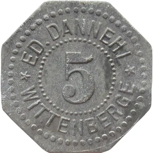 | Obverse lettering | ED. DANNEHL 5 ★ WITTENBERGE ★ |