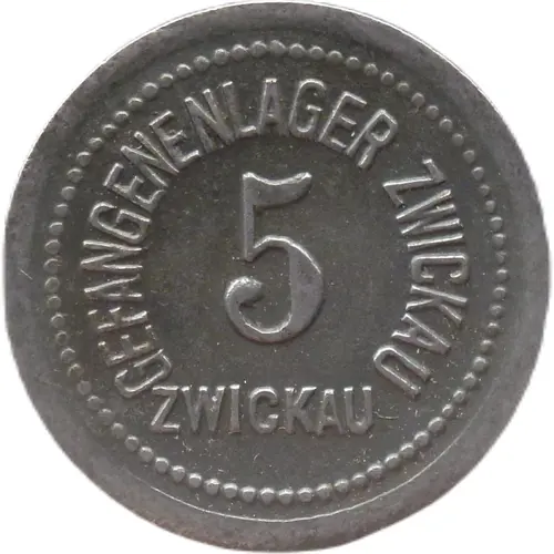 | Obverse lettering | GEFANGENENLAGER ZWICKAU 5 ZWICKAU |