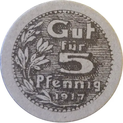 | 表面の銘文 | Gut Für 5 Pfennig 1917 |