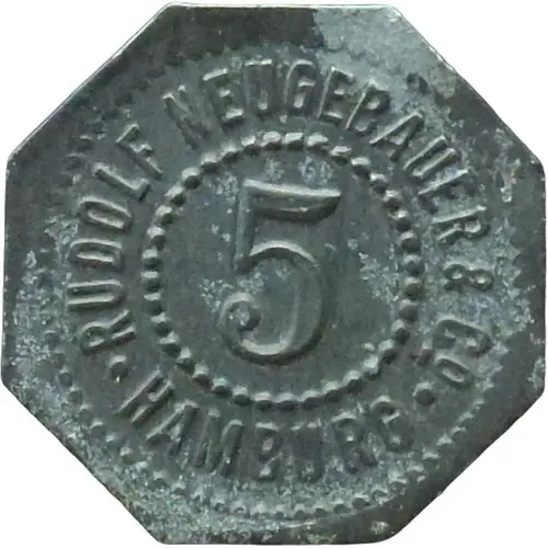 | Obverse lettering | RUDOLF NEUGEBAUER & C° 5 ● HAMBURG ● |