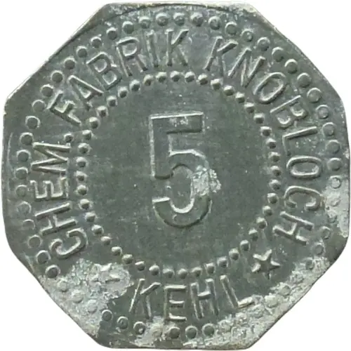| Obverse lettering | CHEM. FABRIK KNOBLOCH 5 KEHL |