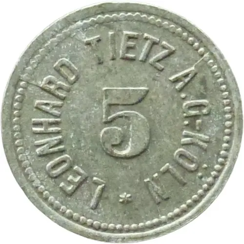 | Obverse lettering | LEONHARD TIETZ A.G. 5 |
