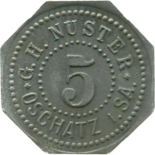 | Obverse lettering | G.H. NUSTER 5 OSCHATZ I.SA. |