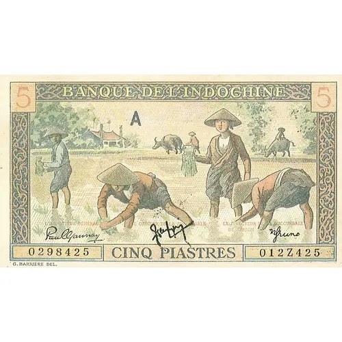 BANQUE DE L`INDO-CHINE CINQ PIASTRES G. BARRIÈRE DEL. |