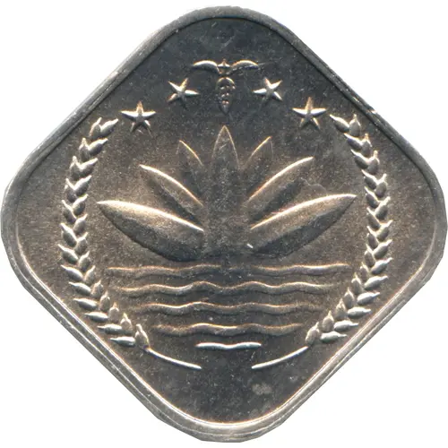 | Reverse lettering | বাংলাদেশ ১৯৭৩ ৫ পয়সা (Translation: Bangladesh 1973 5 Poisha) |