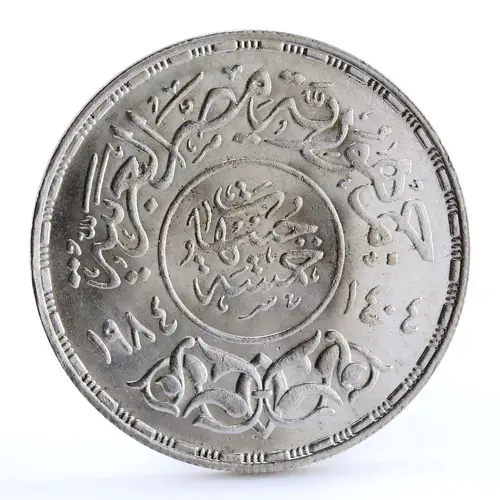 | Ön yüz lejandı | جمهورية مصر العربية خمسة جنيهات ١٩٨٤ - ١٤٠٤ (Translation: Arab Republic of Egypt Five pounds 1404 - 1984) |
