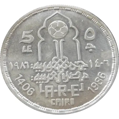 | Obverse lettering | 5 LE ٥ ARE CAIRO ١٩٨٦ - ١٤٠٦ 1406 - 1986 |