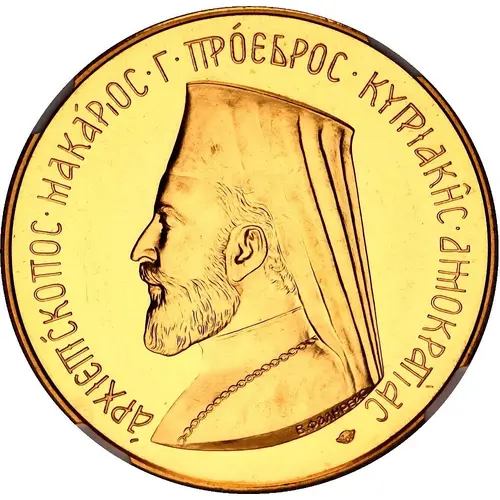 ΑΡΧΙΕΠΙΣΚΟΠΟΣ ΜΑΚΑΡΙΟΣ ΠΡΟΕΔΡΟΣ ΚΥΠΡΙΑΚΗΣ ΔΗΜΟΚΡΑΤΙΑΣ (Translation: Archbishop Makarios President of Cyprus Republic) |