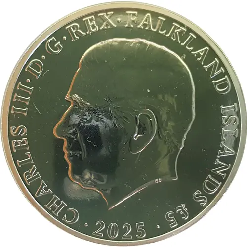 | Opschrift voorzijde | CHARLES III D G REX FALKLAND ISLANDS £5 2025 |
