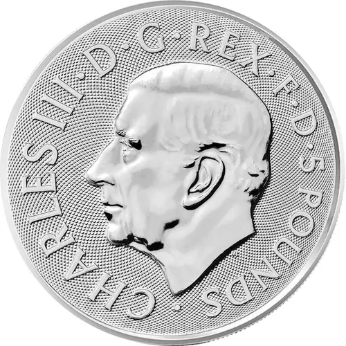 | Obverse lettering | CHARLES III·D·G·REX·F·D·5 POUNDS· MJ (Translation: Charles the Third by the Grace of God King Defender of the Faith) |