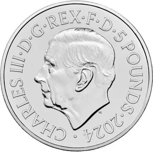 | Obverse lettering | CHARLES III·D·G·REX·F·D·5 POUNDS·2024 MJ (Translation: Charles the Third by the Grace of God King Defender of the Faith) |