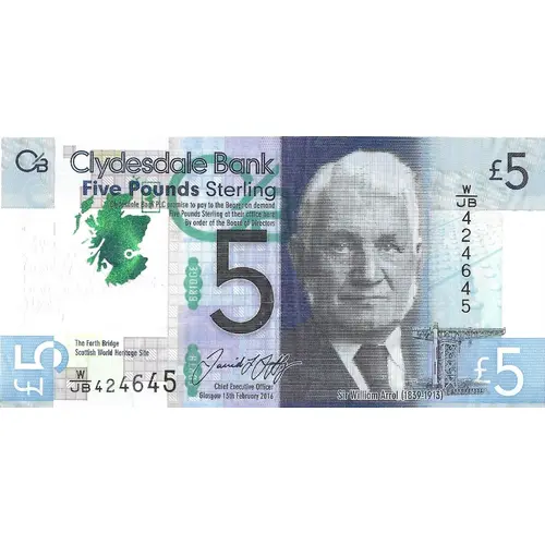 Clydesdale Bank Five Pounds Sterling Clydesdale Bank PLC promise to pay the Bearer on demand Five Pounds Sterling at their office here By order of the Board of Directors 5 The Forth Bridge Scottish World Heritage Site |