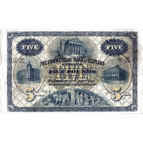 The Commercial Bank of Scotland Limited Promise to pay the bearer on demand Five Pounds Sterling At the office here Edinburgh By order of the Court of Directors |