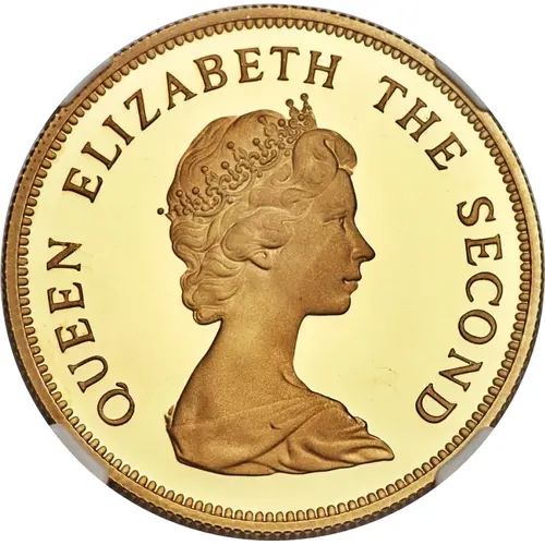 Artistry: The obverse of this impressive gold coin features the iconic 'Second Portrait' of Queen Elizabeth II, masterfully sculpted by Arnold Machin. This effigy, depicting the Queen wearing the Girls of Great Britain and Ireland Tiara, exemplifies the classical British numismatic style of the era, characterized by its dignified realism and elegant simplicity. The reverse typically showcases a design emblematic of the Falkland Islands, often incorporating the Islands' coat of arms or indigenous wildlife, rendered with fine detail that reflects traditional heraldic and naturalistic artistry prevalent in Commonwealth coinage of the mid-20th century.