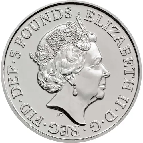 | Obverse lettering | ELIZABETH II·D·G·REG·FID·DEF·5 POUNDS· J.C (Translation: Elizabeth the Second by the Grace of God Queen Defender of the Faith) |