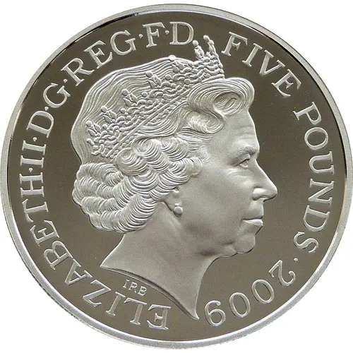 | Obverse lettering | ELIZABETH·II·D·G·REG·F·D FIVE POUNDS·2009 IRB (Translation: Elizabeth the Second by the Grace of God Queen Defender of the Faith) |