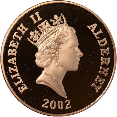 | Obverse lettering | ELIZABETH II ALDERNEY RDM 2002 |