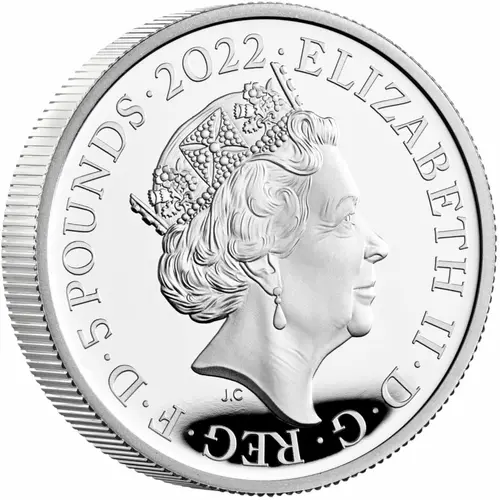 | Obverse lettering | ELIZABETH II·D·G·REG·F·D·5 POUNDS·2022· J.C (Translation: Elizabeth the Second by the Grace of God Queen Defender of the Faith) |