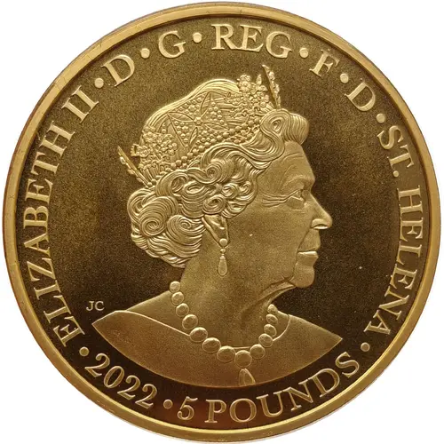 | Obverse lettering | ELIZABETH II·D·G·REG·F·D·ST. HELENA · 2022 5 POUNDS JC |