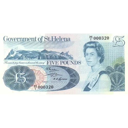 Government of St. Helena £5 Promise to pay bearer on demand the sum of FIVE POUNDS £5 CURRENCY COMMISSIONERS |